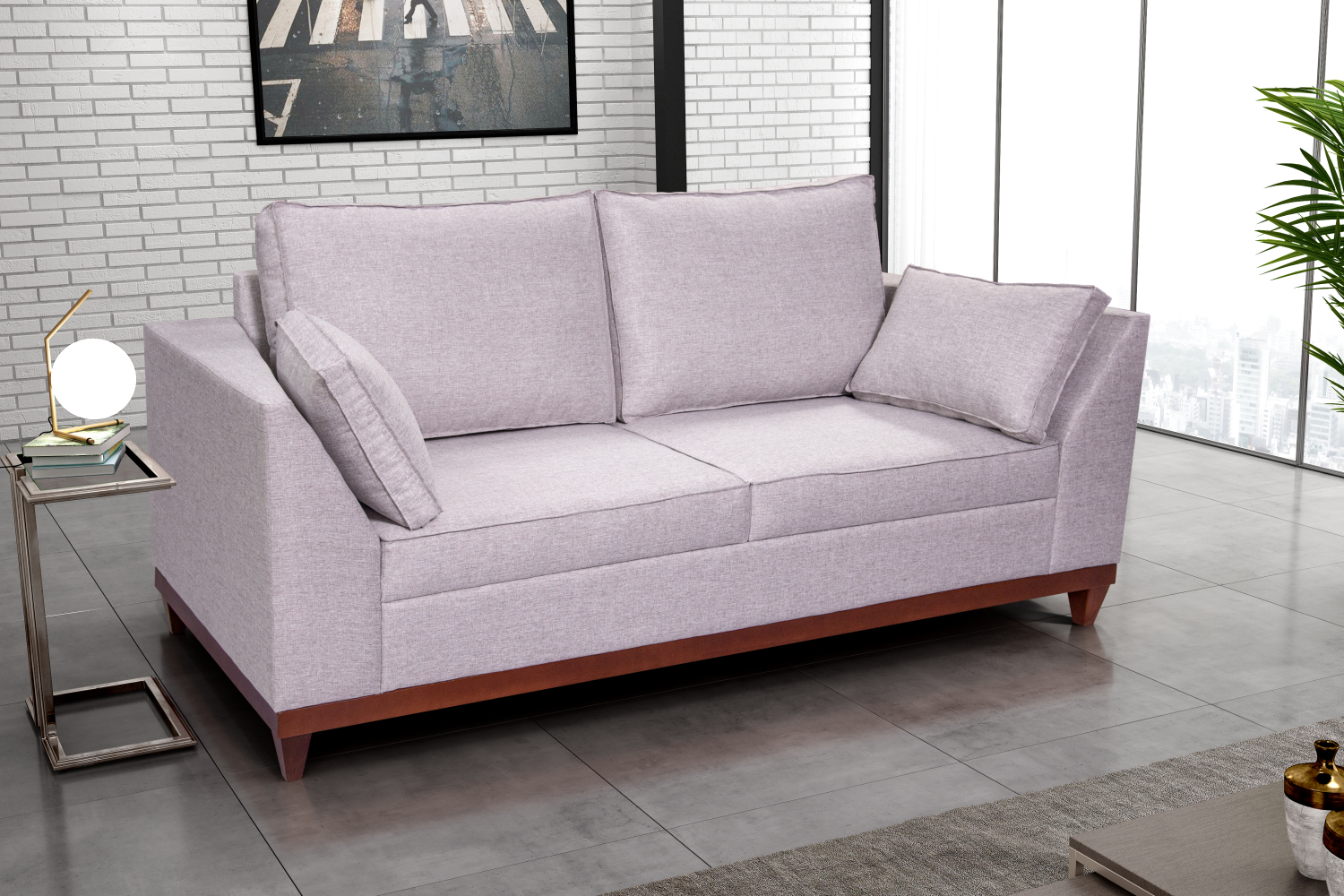 - Almofadas removíveis com enchimento de fibra siliconada;